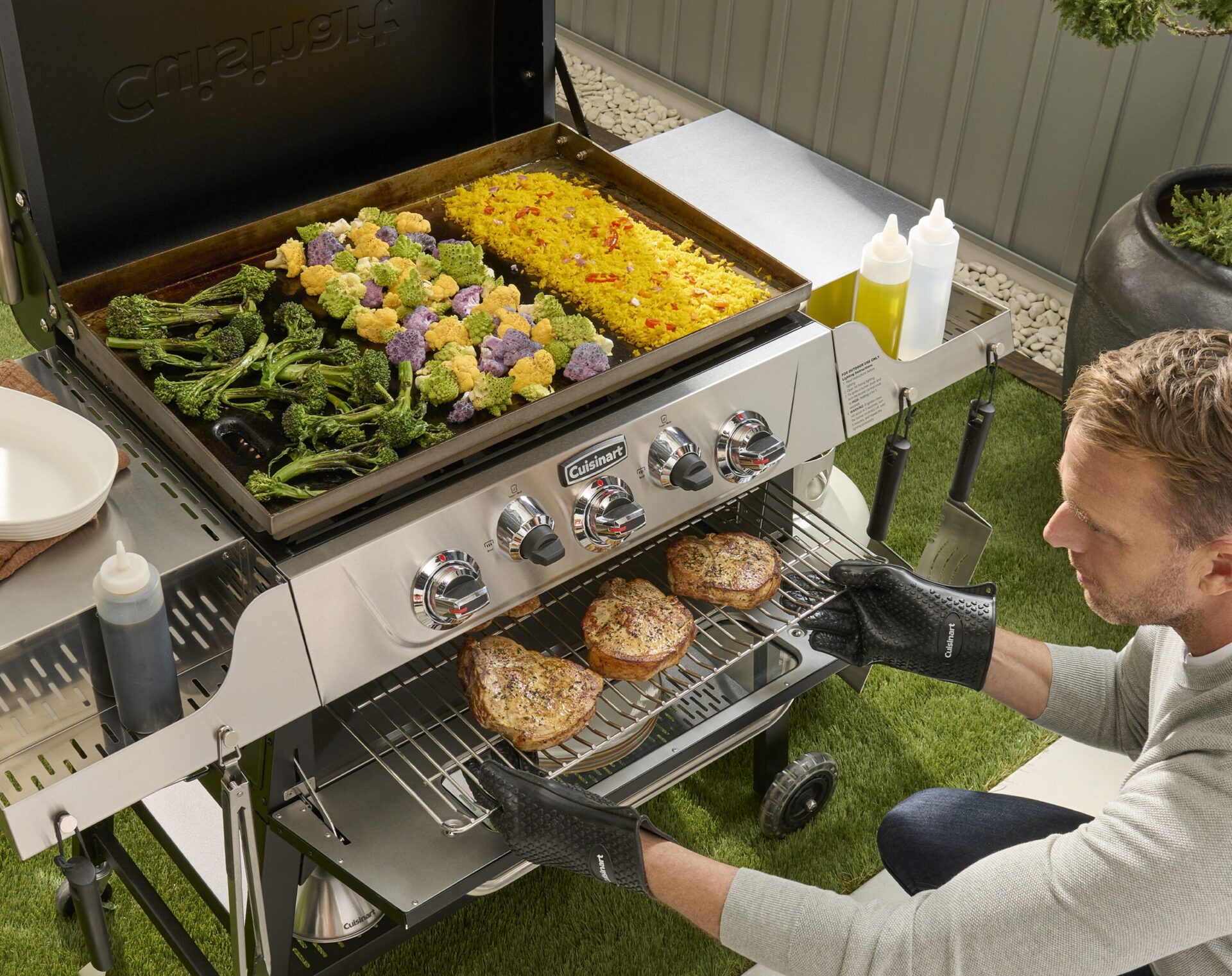 - 3-burners for multi-zone cooking